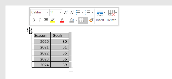 Note: To delete the table, right click the icon in the upper left corner, and then click Delete Table.