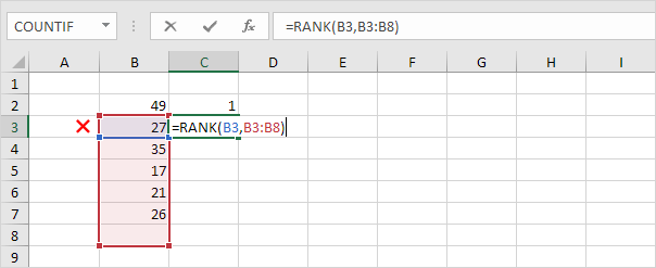Sometimes you need to lock a reference to a range. For example, when using the RANK function to rank numbers in a data set.
