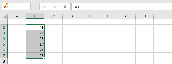 1. Select the range B2:B7, type a name in the Name box and press Enter.