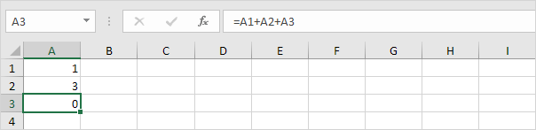 1. For example, the formula in cell A3 below directly refers to its own cell (A3). This is not possible.