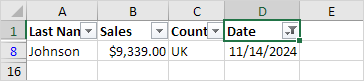 Result: Excel only displays the sales of last month.
