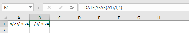 2. Use the DATE function below to return January 1, 2024. The DATE function accepts three arguments: year, month and day.