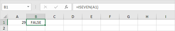 The ISEVEN function returns TRUE if a number is even and FALSE if a number is odd.