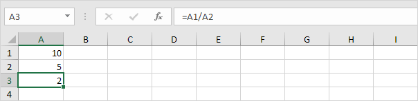 Note: use the forward slash (/) to divide numbers in Excel.