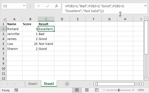 Note: instead of executing steps 1-3, simply use the keyboard shortcut Ctrl + Shift + U to expand the formula bar. Visit our page about the IF function to learn more about this great Excel function.