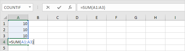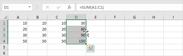 Note: cell D1 contains the value 30 (not a formula), cell D2 contains the value 60 (not a formula), etc.