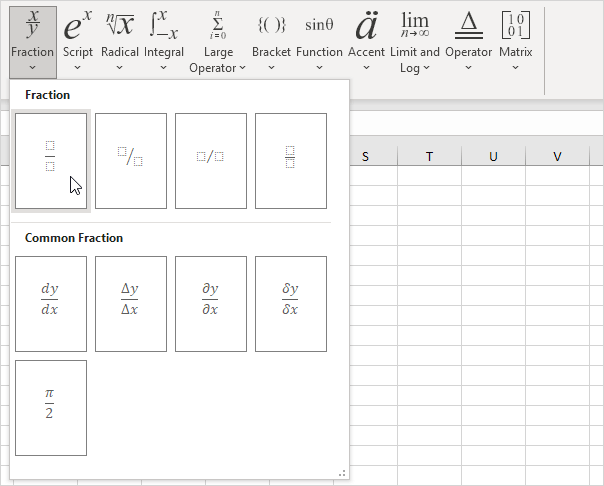Note: we increased the font size of the fraction and changed the background color of the cells to White.