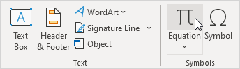 6. On the Insert tab, in the Symbols group, click the Pi symbol to add a new equation.