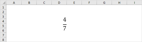 1. To enter the mixed fraction 1 4/7 (one and four sevenths), type 1 4/7. To enter the fraction 4/7 (four sevenths) into cell A1, select cell A1 and type 0 4/7 (with a 0 or Excel thinks you want to enter a date).