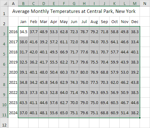 4. Select the range B3:M11.
