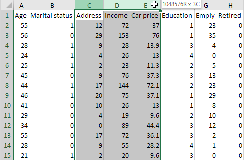 2. To select non-adjacent columns, hold CTRL while clicking the column headers.
