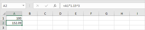 5. We can check this. Assume you put $100 into a bank. How much will your investment be worth after 3 years at an annual interest rate of 15%? The answer is $152.09.