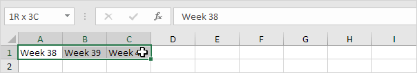 4. For example, enter a label in cell A1, B1 and C1 and select these cells.