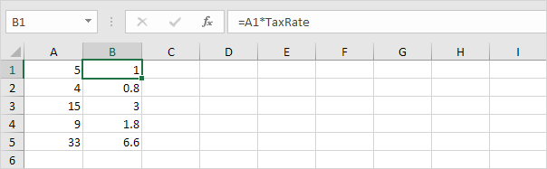 Result: Excel automatically updates all the formulas that use TaxRate.