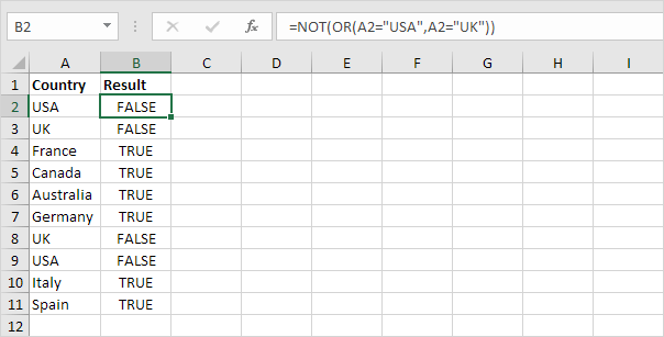 Explanation: by adding the NOT function, the logical value returned by the OR function is reversed, so that a TRUE value becomes FALSE, and vice versa.