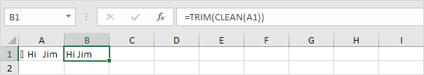 1. The TRIM function below removes 2 leading spaces, 3 extra spaces and 2 trailing spaces.