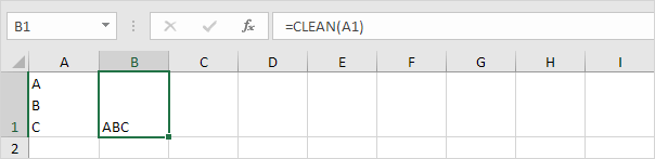 6. The CLEAN function removes line breaks. To enter a line break, press ALT + ENTER.