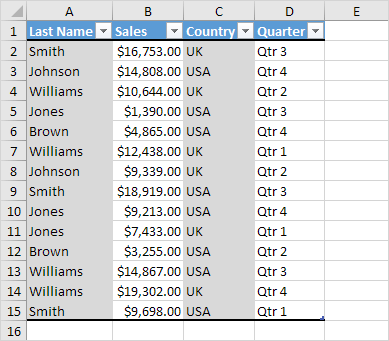 Note: use the filter arrows to sort and filter this table. Visit our chapter about tables to learn more about this topic.