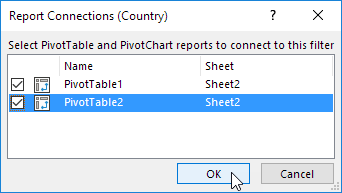 13. On the Slicer tab, in the Slicer group, click Report Connections.
