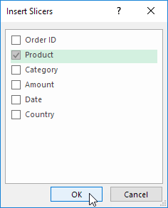 10. Use the second slicer. Click the Multi-Select button to select multiple products.