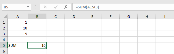 1. For example, the SUM function below sums a range of cells.