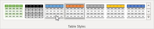 5. First, select a cell inside the table. Next, on the Table Design tab, in the Table Styles group, click a table style (hover over a style to see a live preview).