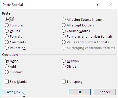5. Click Paste Link.