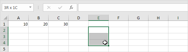1. Select the range A1:C1.