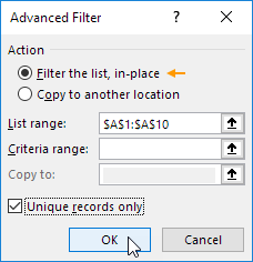 Note: visit our page about removing duplicates to learn more about this great Excel tool.