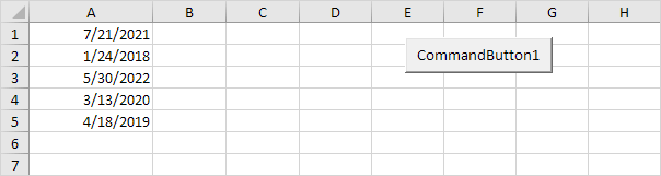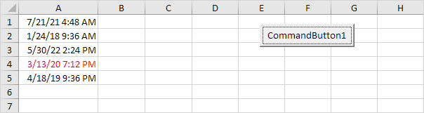 This example teaches you how to compare dates and times in Excel VBA. Dates and times are stored as numbers in Excel and count the number of days since January 0, 1900. What you see depends on the number format.