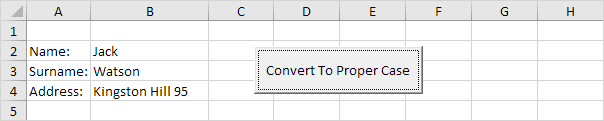 This page illustrates how to create a program in Excel VBA that converts text to proper case. That is, the first letter of each word is in uppercase, and all other letters are in lowercase.