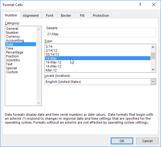 Note: the number format code of a date format typically includes combinations of d (days), m (months), and y (years). Make sure to copy only this part if the number format code contains additional elements.