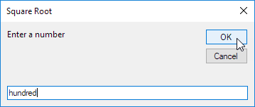 2. Click the command button on the sheet, enter the string value hundred and click OK.